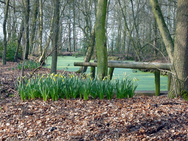 Nogmaals het bruggetje nu van dichtbij genomen en dat leverde een prachtige achtergrond op voor de narcissen op deze foto.